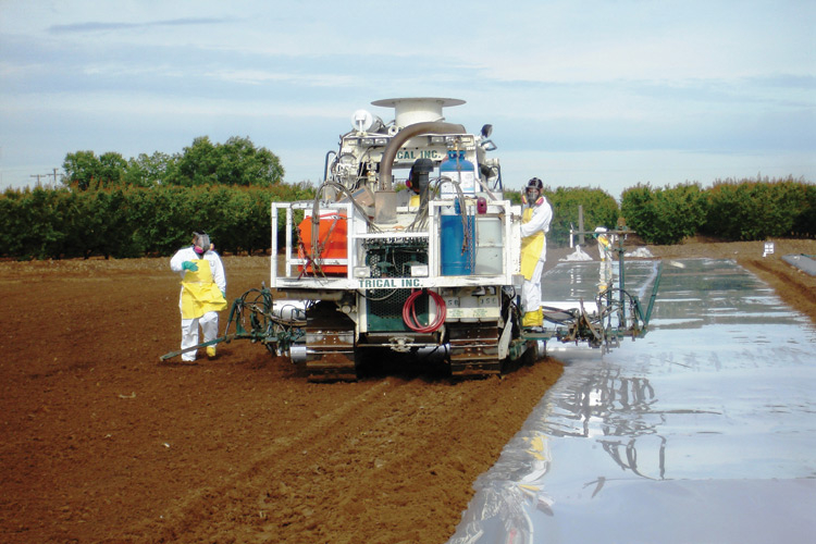 Methyl Bromide gas is released as a vapourised gas or directly from its container into a fumigation chamber or under a tarp containing the commodities. Some commodities are treated multiple times during both storage and shipment.